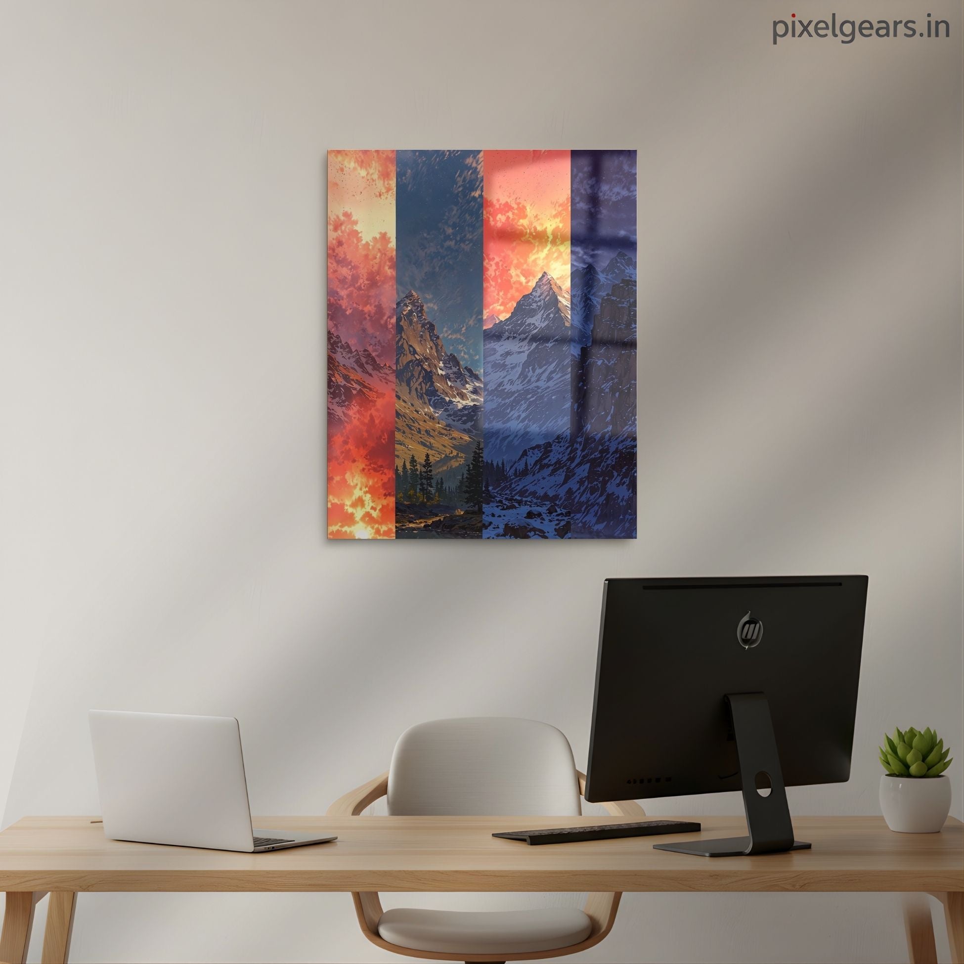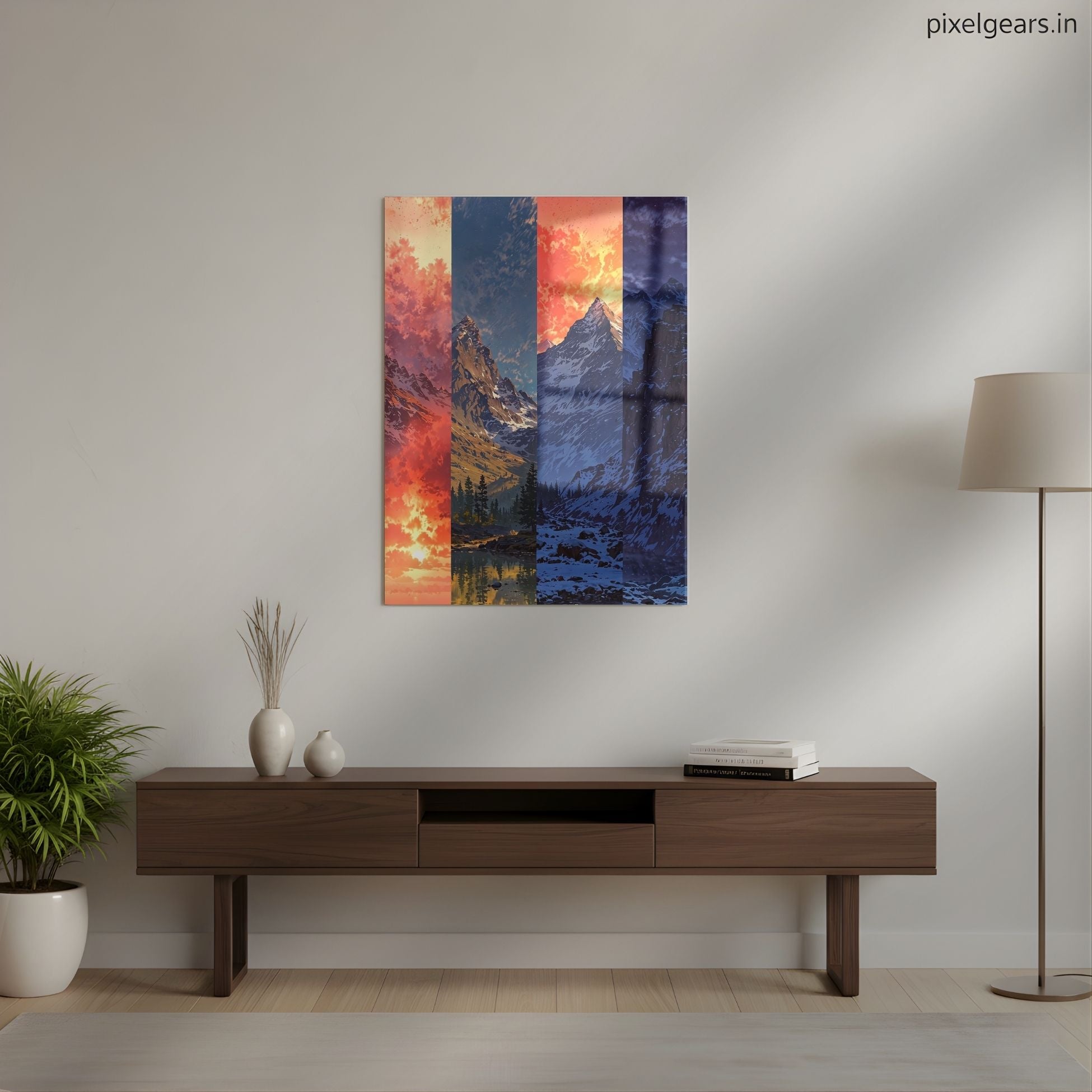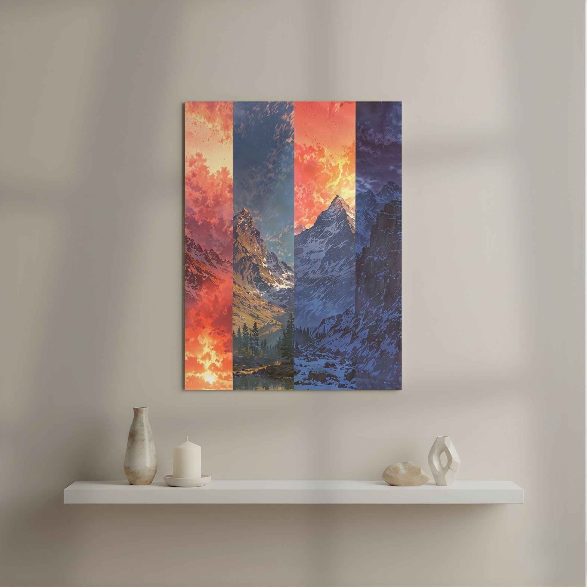 Four Seasons Mountain Vista Metal Poster | Aesthetic Pop Art Wall Decor & Painting