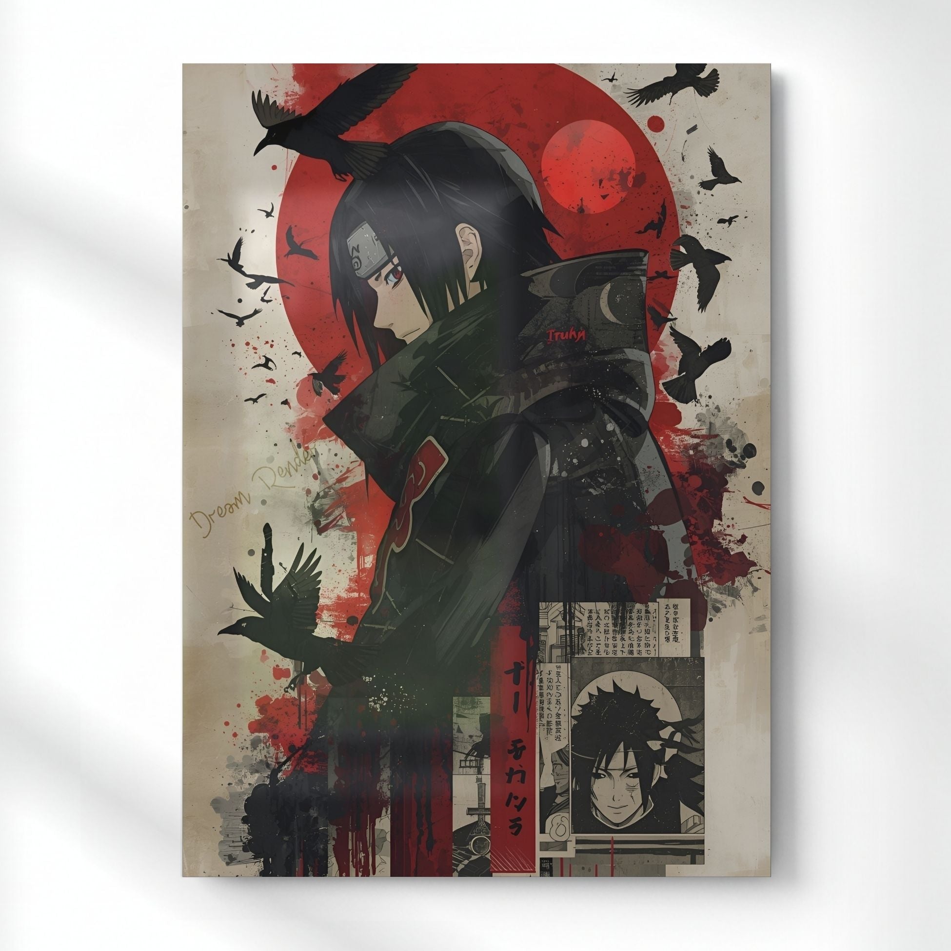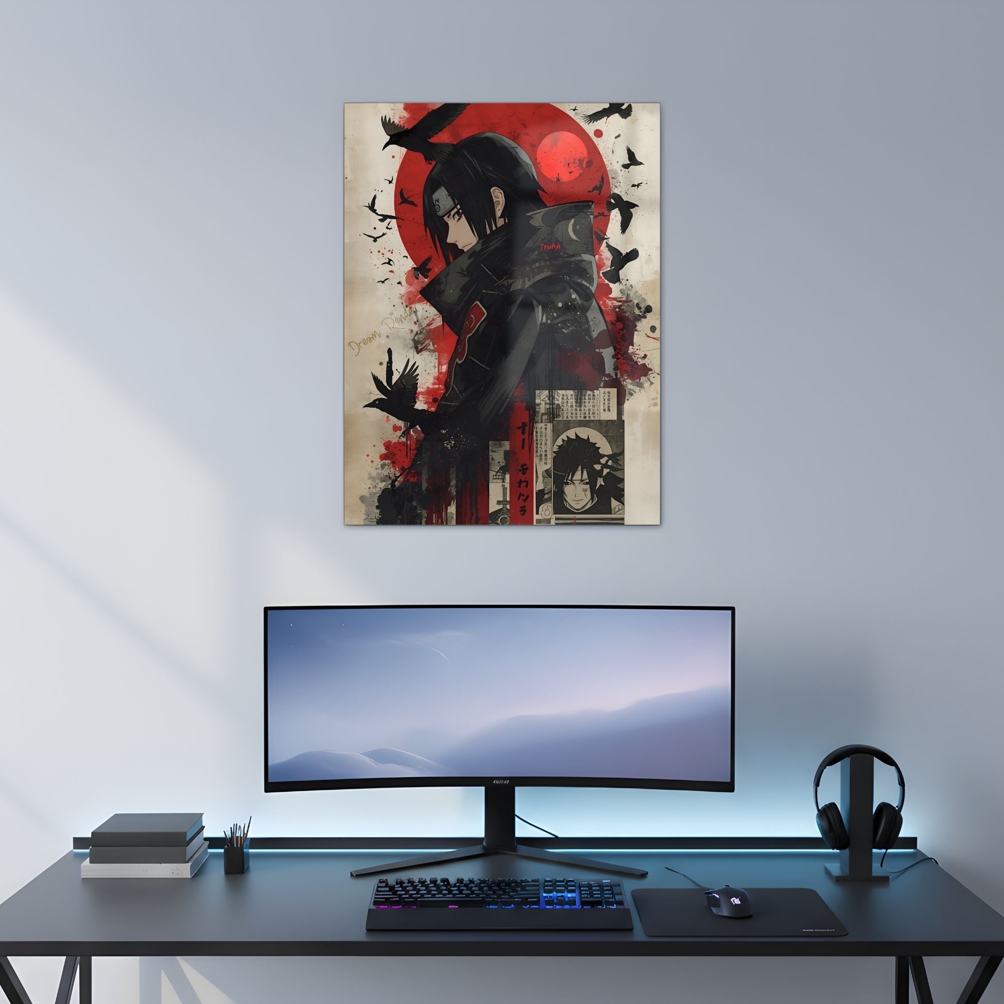 Itachi Red Moon Metal Poster | Aesthetic Pop Art Wall Decor & Painting