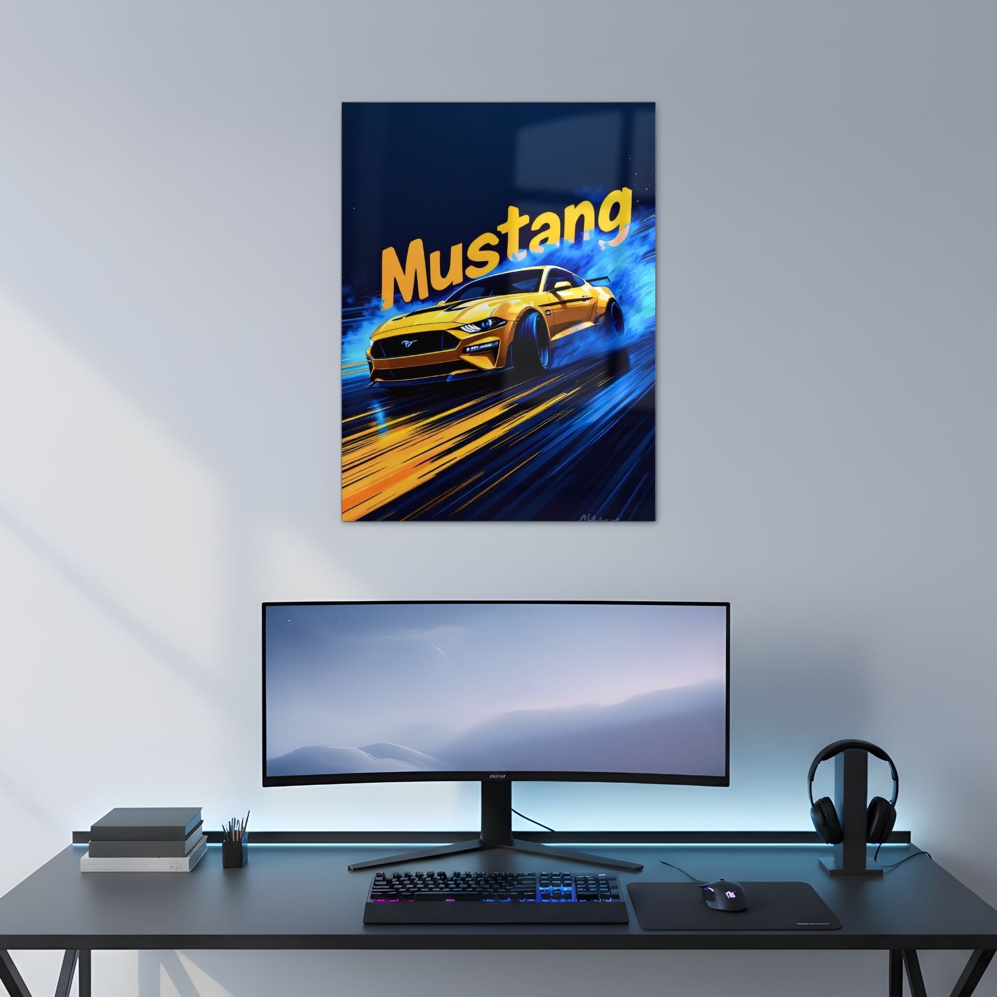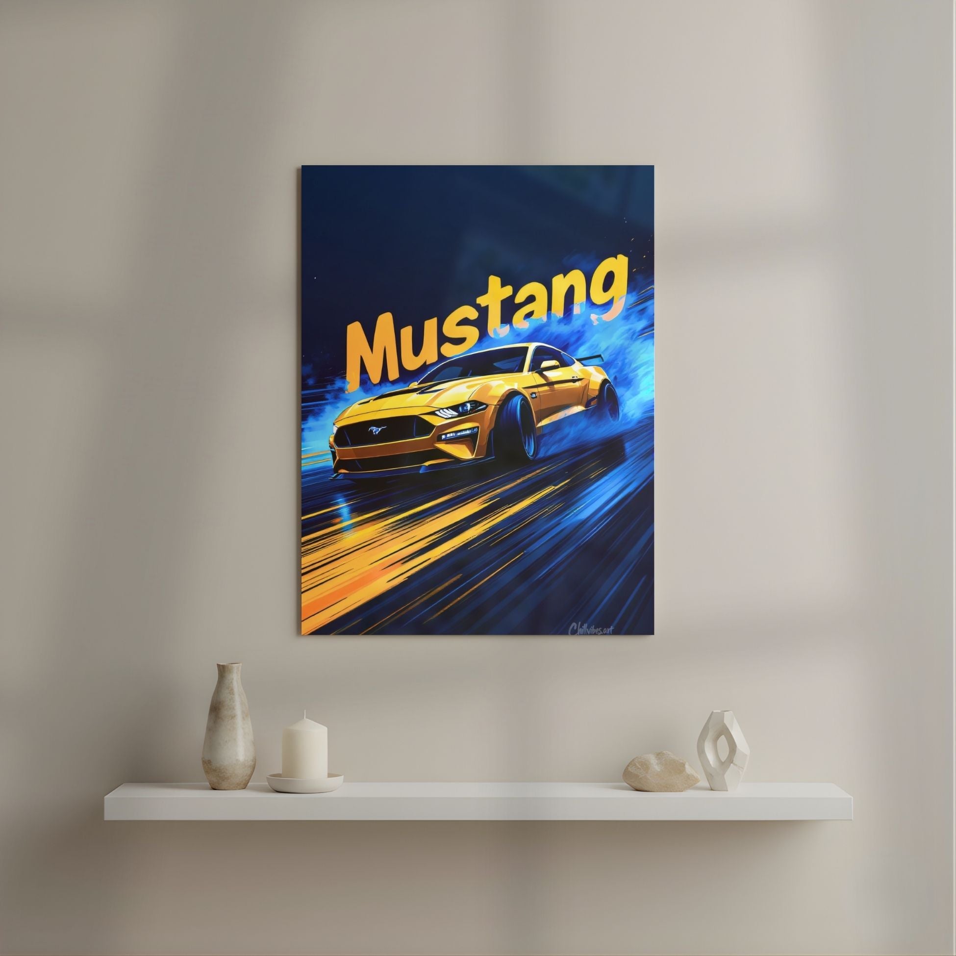 Mustang: Blue Smoke Drift Metal Poster | Aesthetic Pop Art Wall Decor & Painting