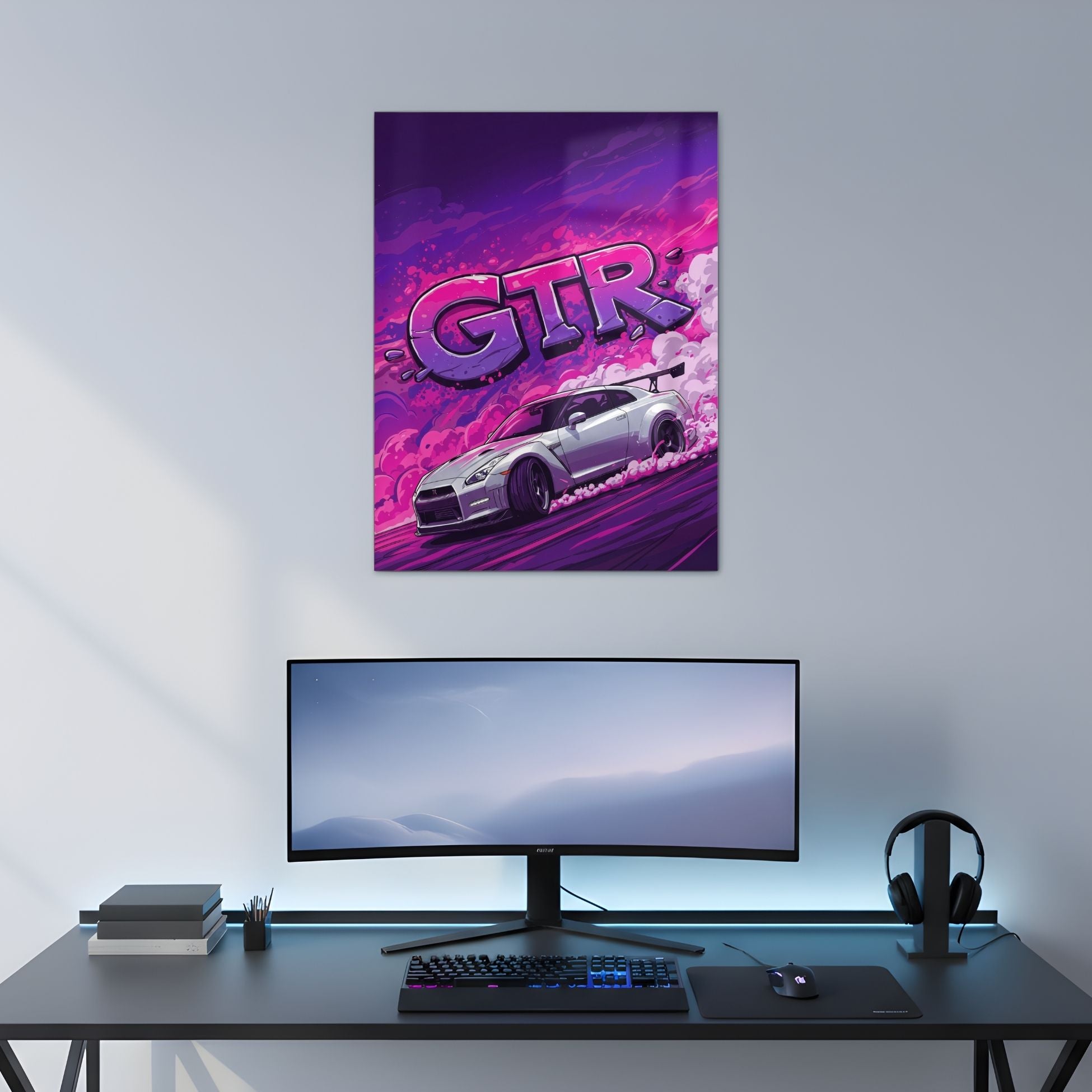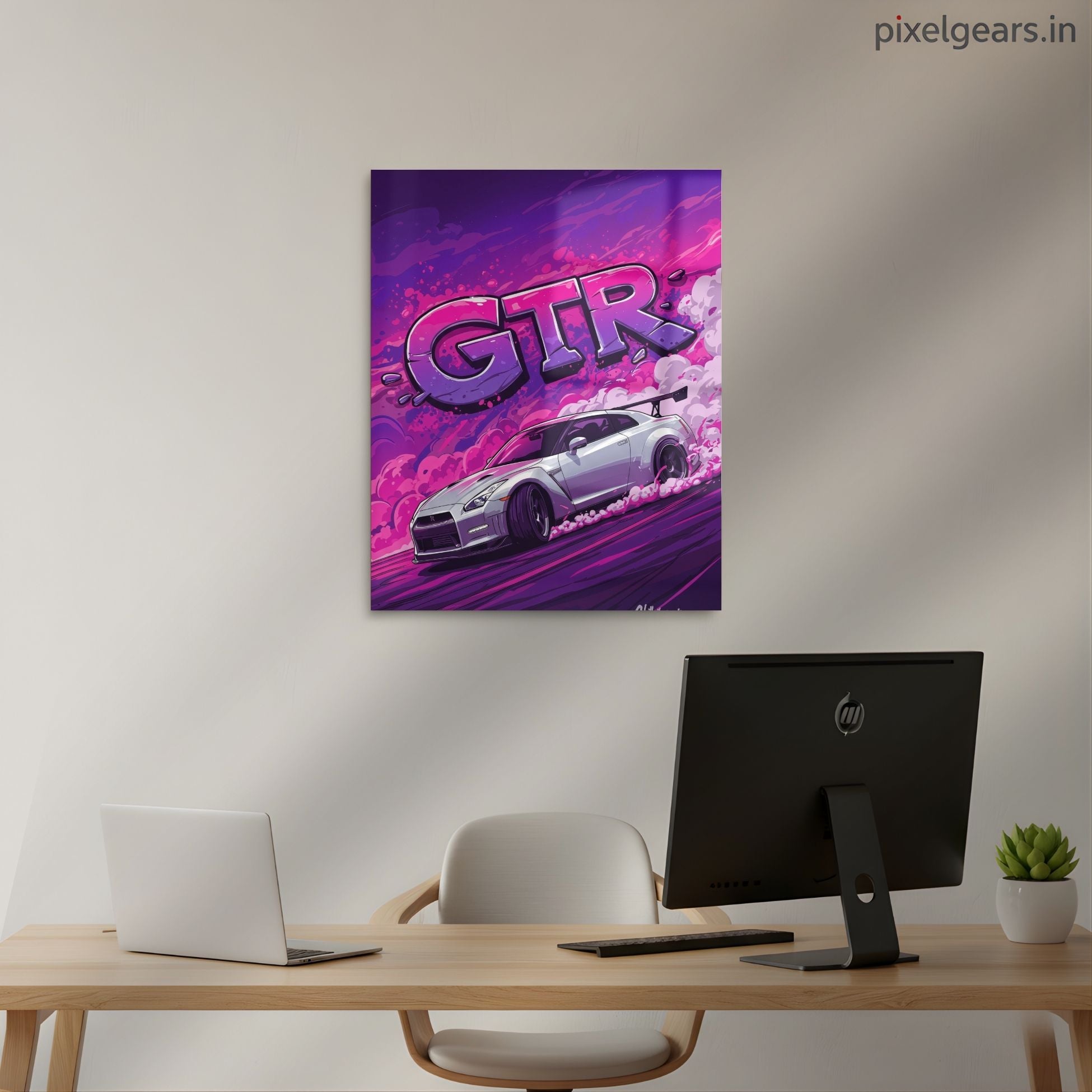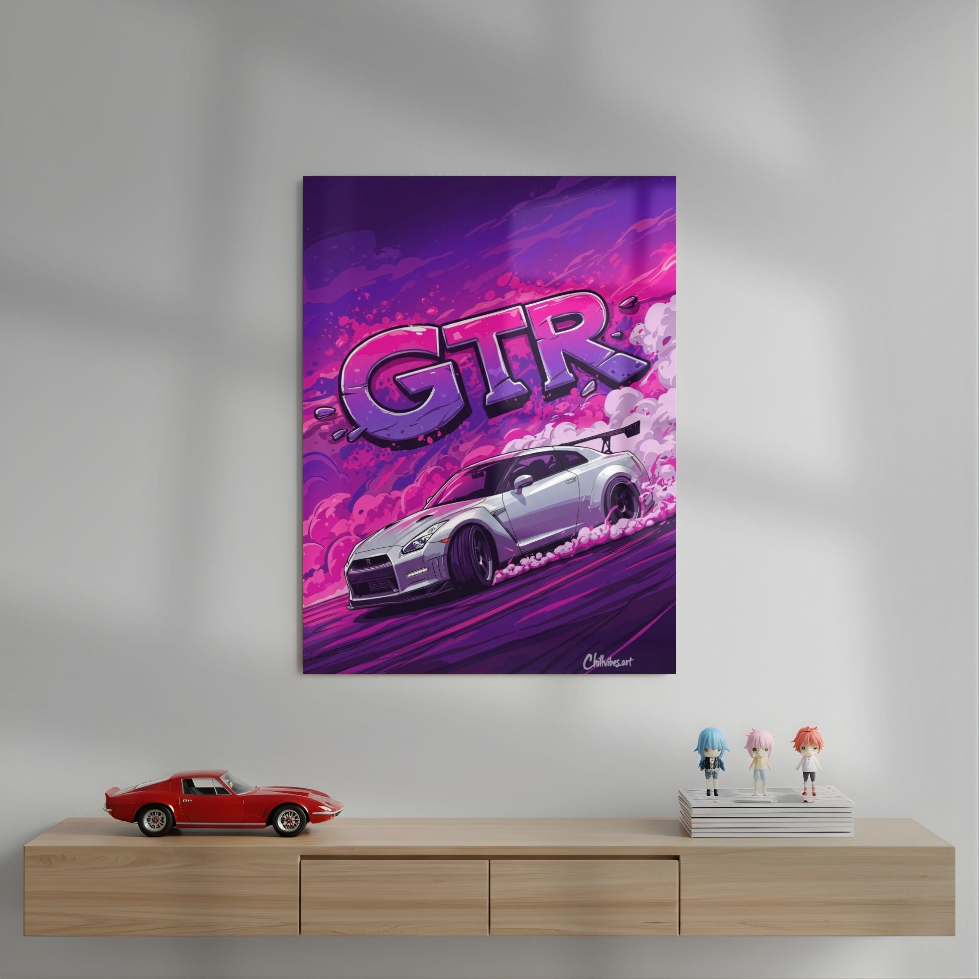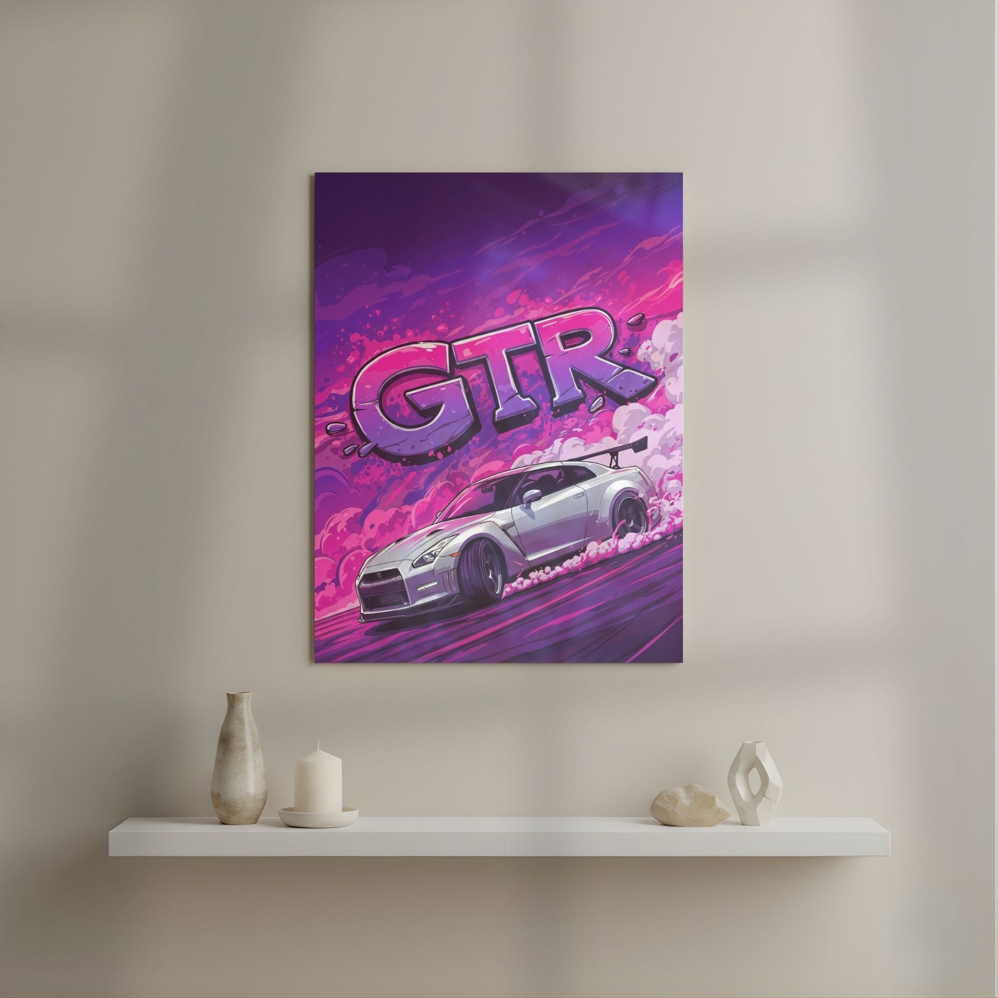 Nissan GTR Drift Art Metal Poster | Neon Pop Art Car Wall Decor