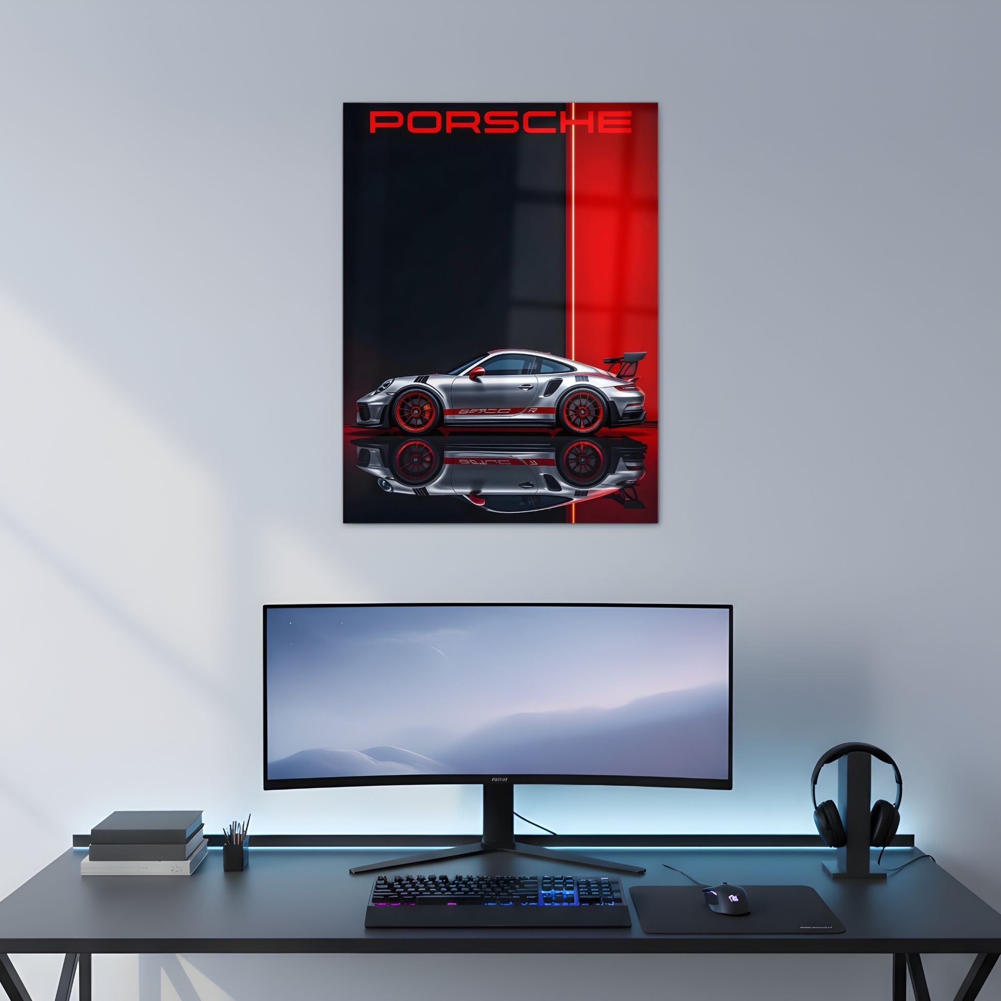 The Ultimate Porsche's Profile in Red Metal Poster for Your Walls