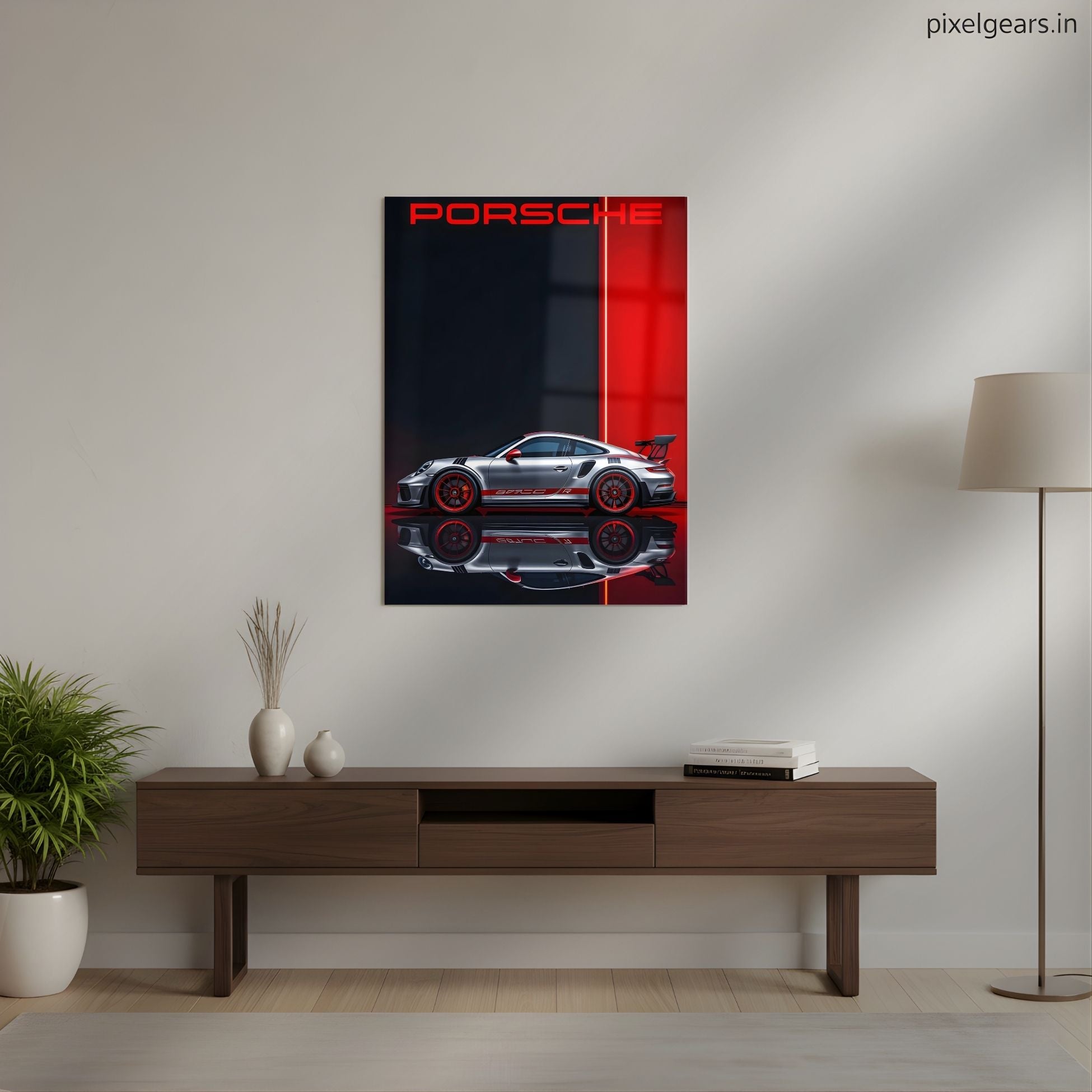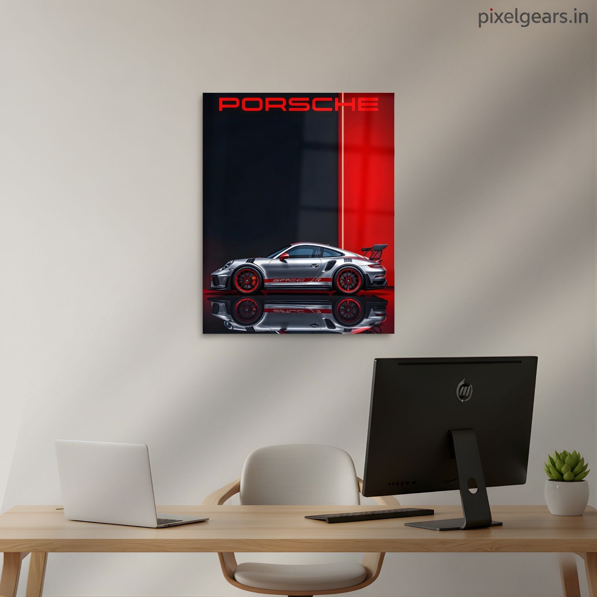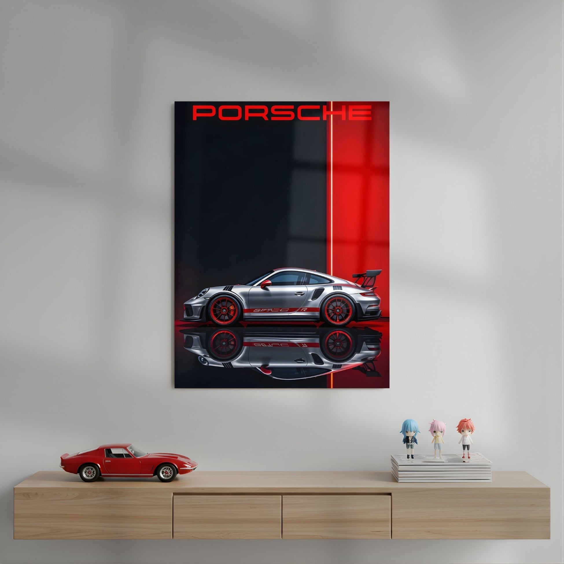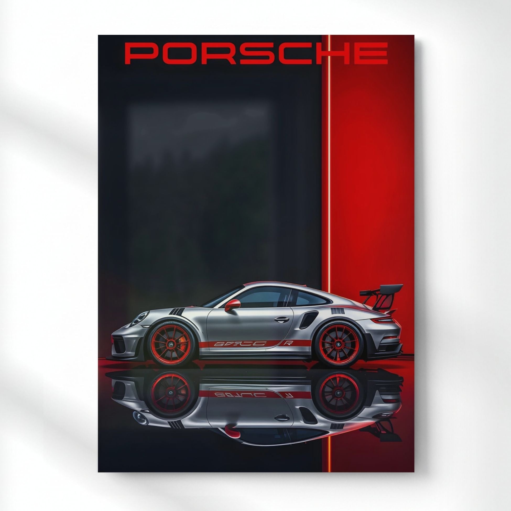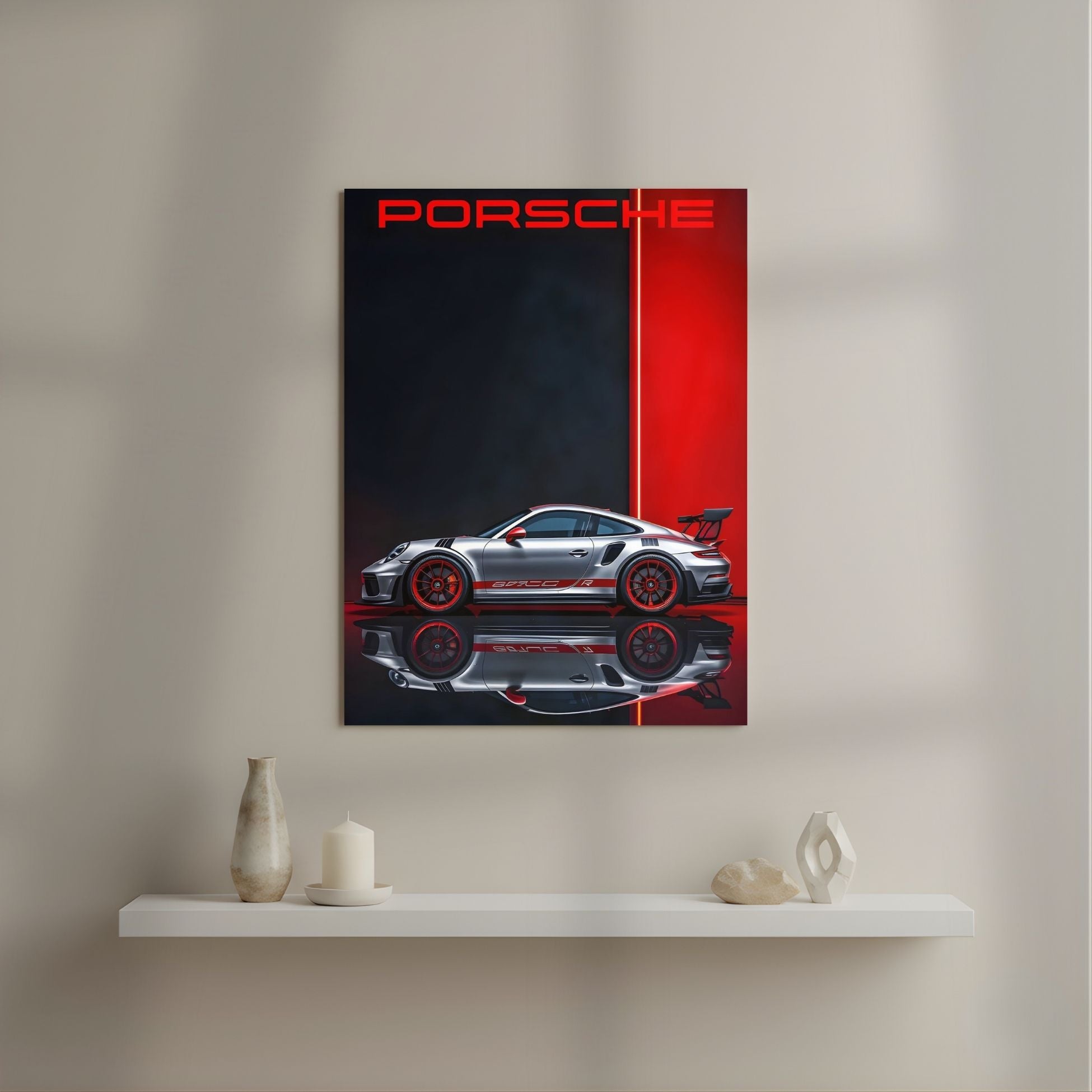 Porsche's Profile in Red Metal Poster | Aesthetic Pop Art Wall Decor & Painting