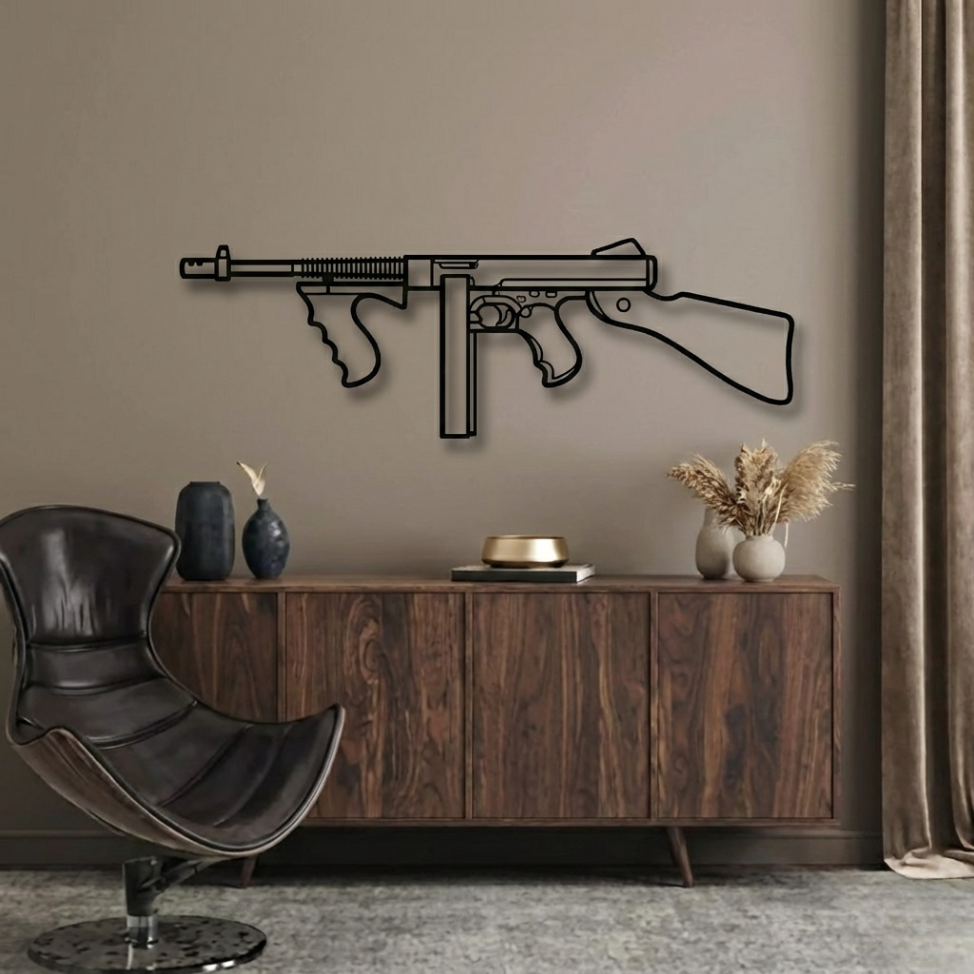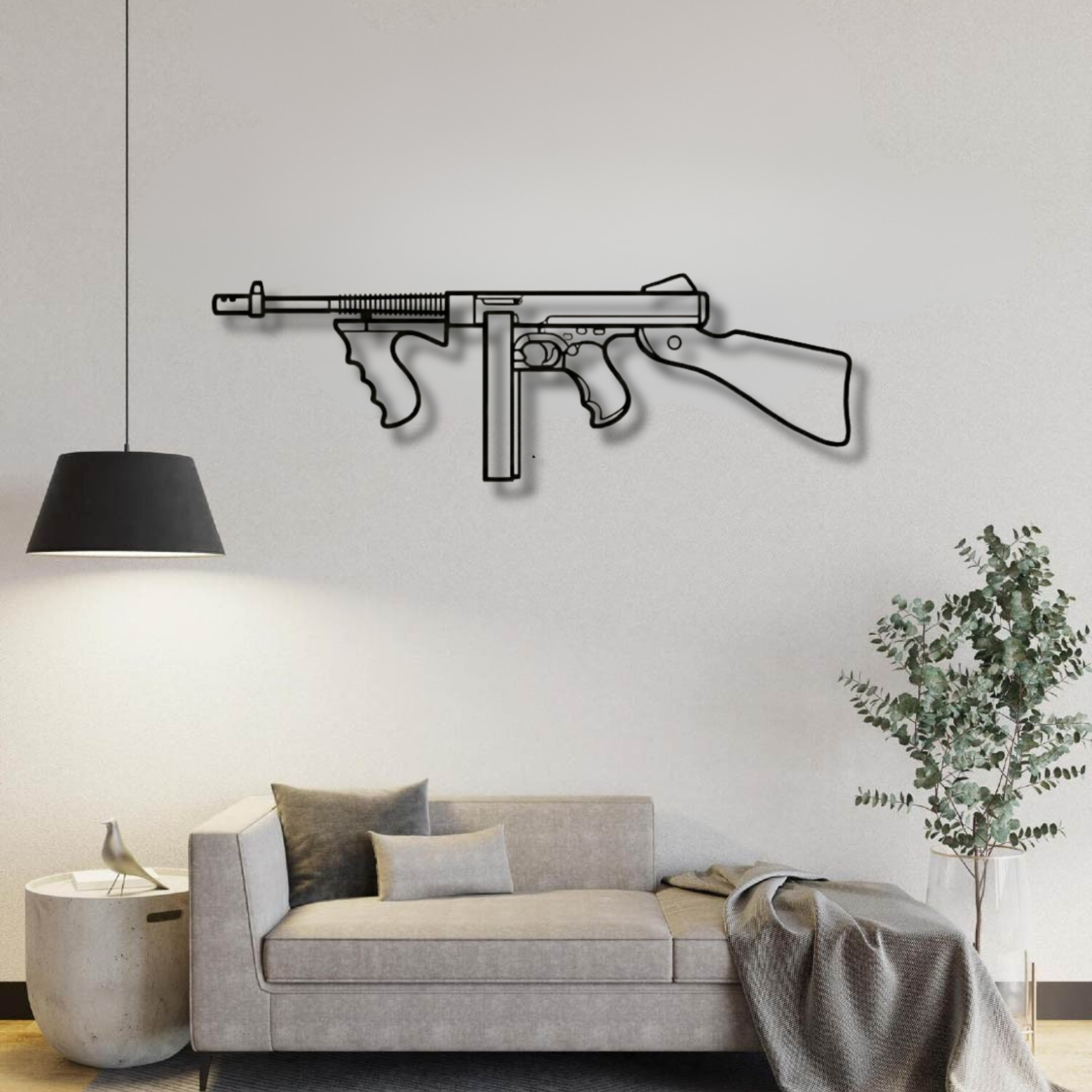 Tommy Gun Silhouette BGMI Metal Gun Silhouette Wall Art - PixelGears