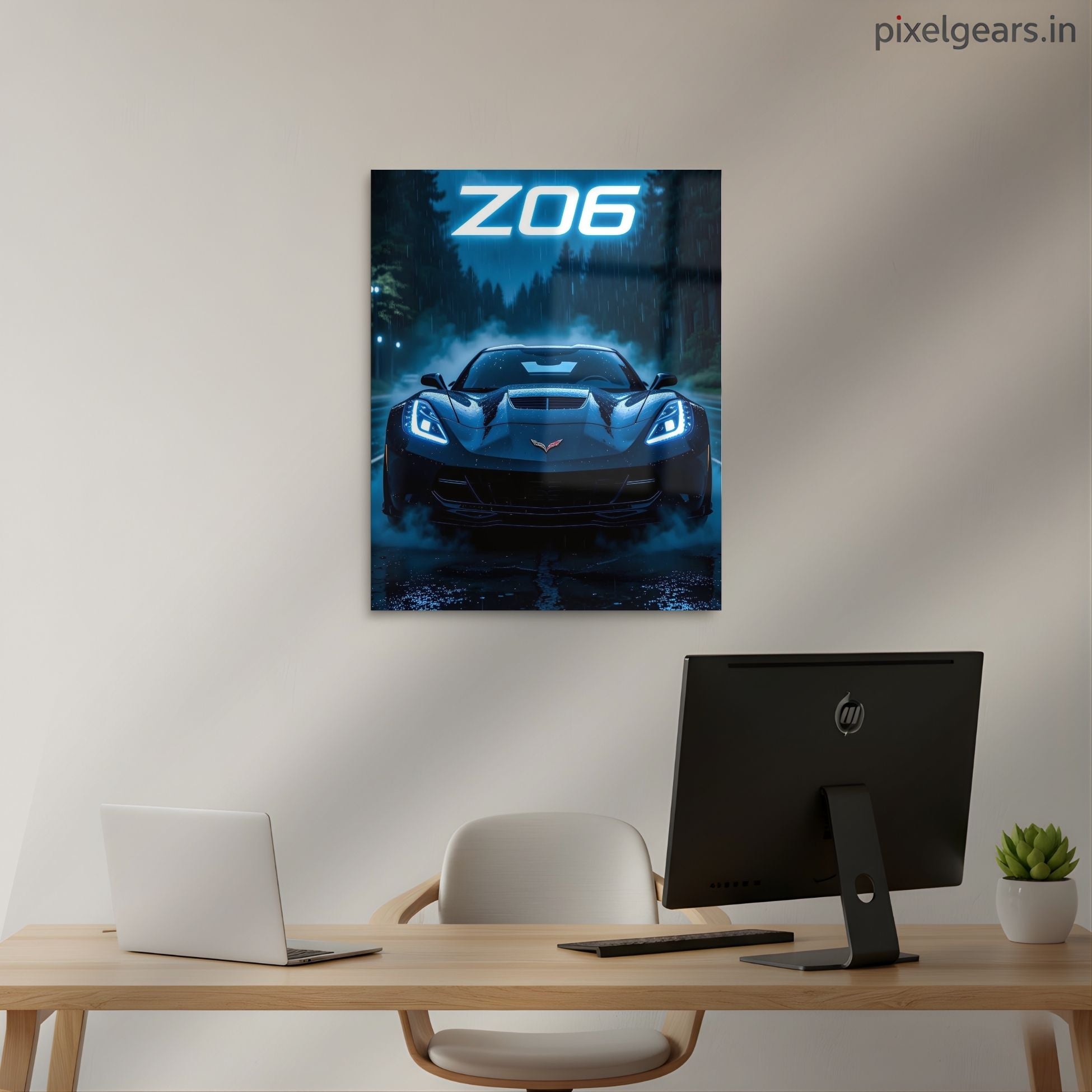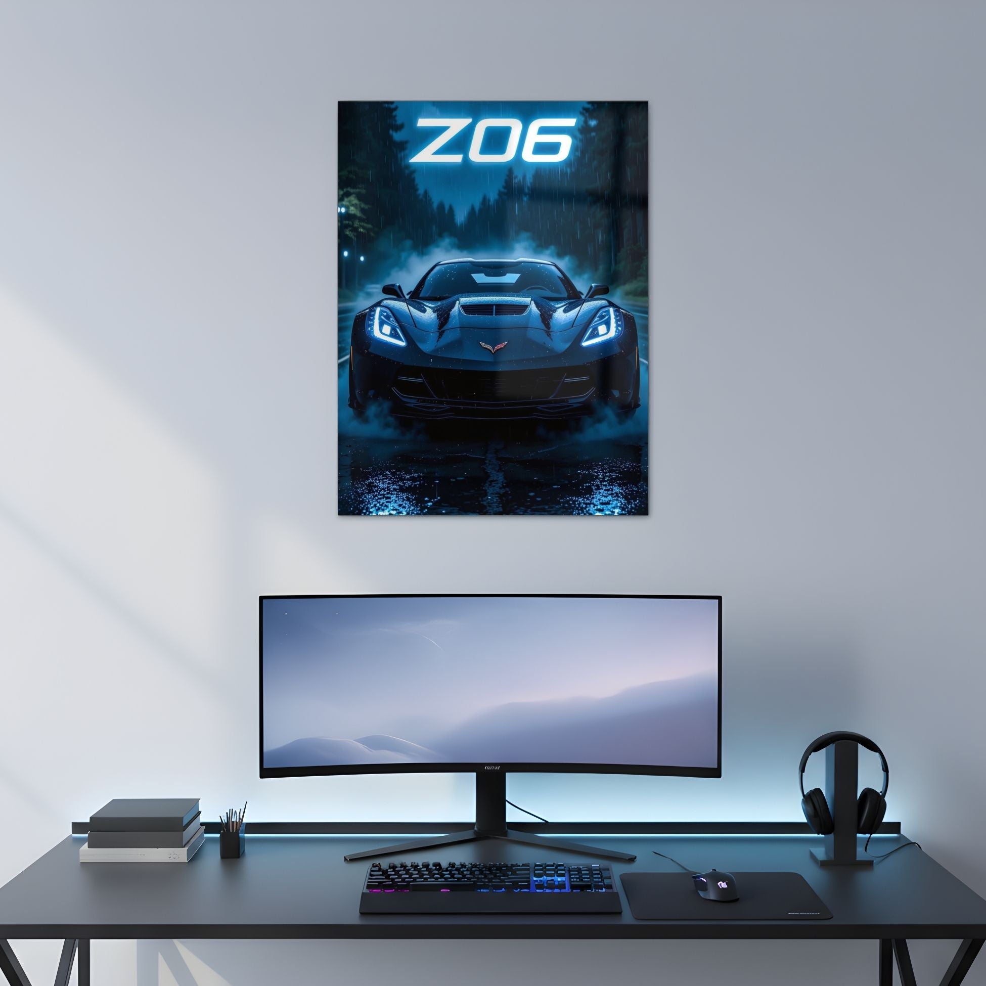 The Ultimate Z06: Neon Rain Run Metal Poster for Your Walls